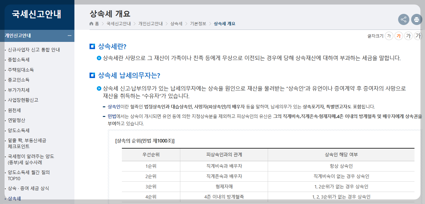 공식 홈페이지에서 상속세 개정 내용 확인하기